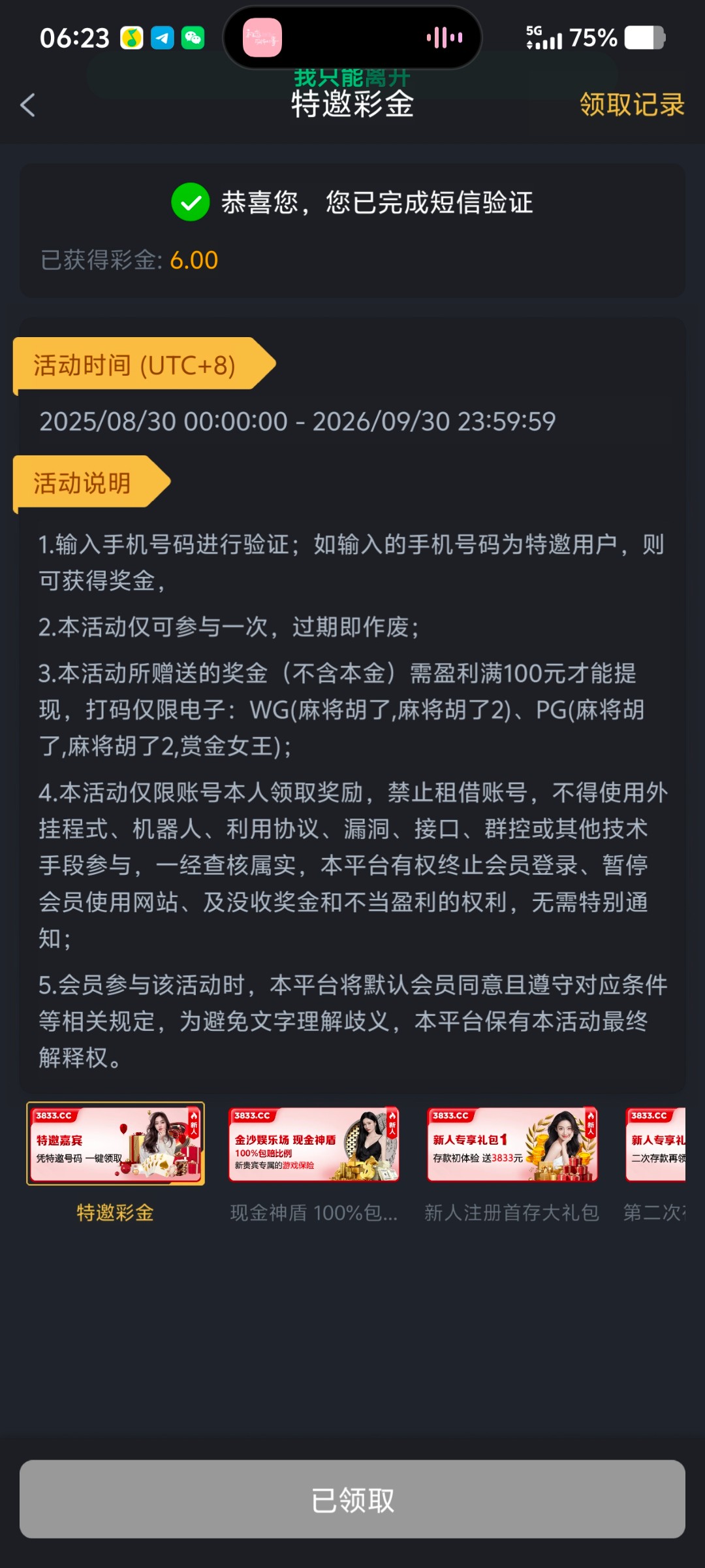 【金沙3833】— 特邀送6 白嫖